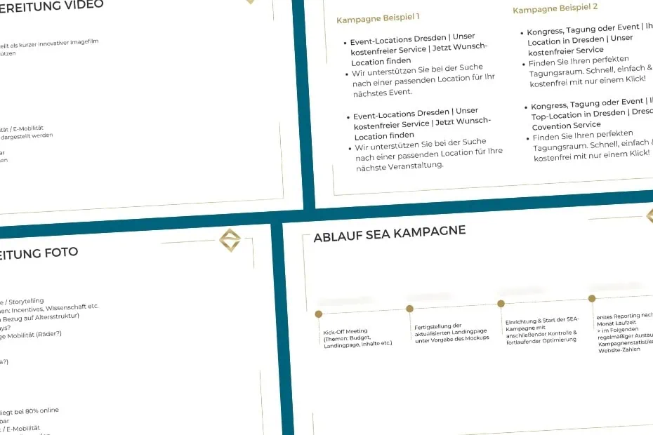 Für Dresden Marketing haben wir im vergangenen Jahr eine Vielzahl von Marketingmaßnahmen durchgeführt, die dazu beigetragen haben, die Marke gezielt zu positionieren, die Online-Sichtbarkeit zu steigern und den Erfolg der Kampagnen messbar zu machen. Wir unterstützten das Unternehmen mit Kampagnenentwicklung, der Einrichtung und Betreuung von Google Ads sowie der strategischen SEA-Kampagnenumsetzung.