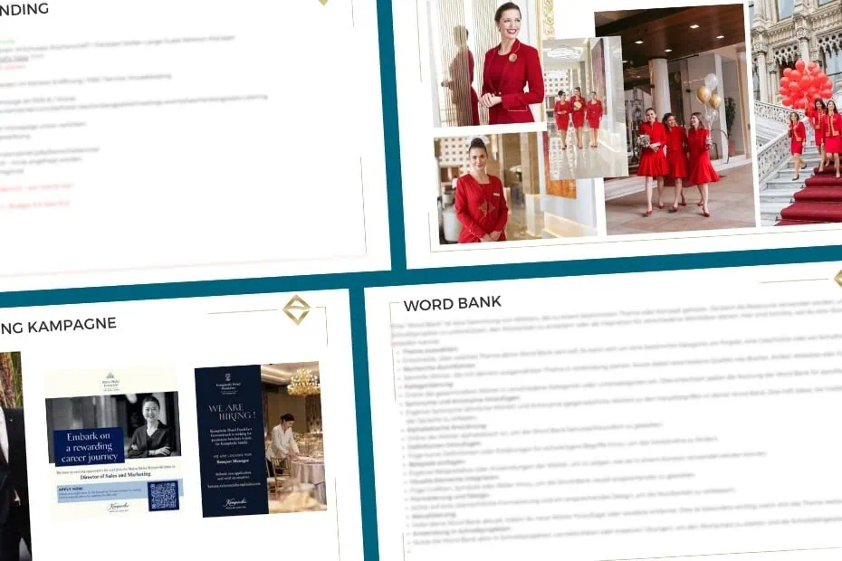 Die Grafik zeigt eine Collage der Arbeiten von den ERFOLGSVISIONÄREN für Hotel Taschenbergpalais Kempinski Dresden.