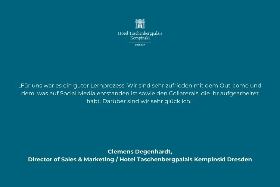 Nach einer umfangreichen Renovierung des Hotel Taschenbergpalais Kempinski Dresden sollte im Februar 2024 nicht einfach nur wiedereröffnet werden – es sollte ein Statement gesetzt werden. Neues Design, neue Ausrichtung, neue Energie. Und genau das sollte auch draußen sichtbar werden.