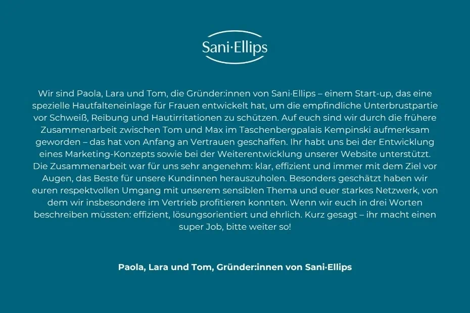 Mit dem Launch von Sani-Ellips wurde ein durchdachter Auftritt geschaffen, der Kompetenz und Empathie vereint. Die Marke positioniert sich als moderne, weibliche Lösung für alltägliche Hautprobleme – visuell klar, emotional nahbar und digital auf den Punkt. Die Website präsentiert das Produkt authentisch und informativ – mobil optimiert, einfach verständlich und bereit, zu überzeugen.